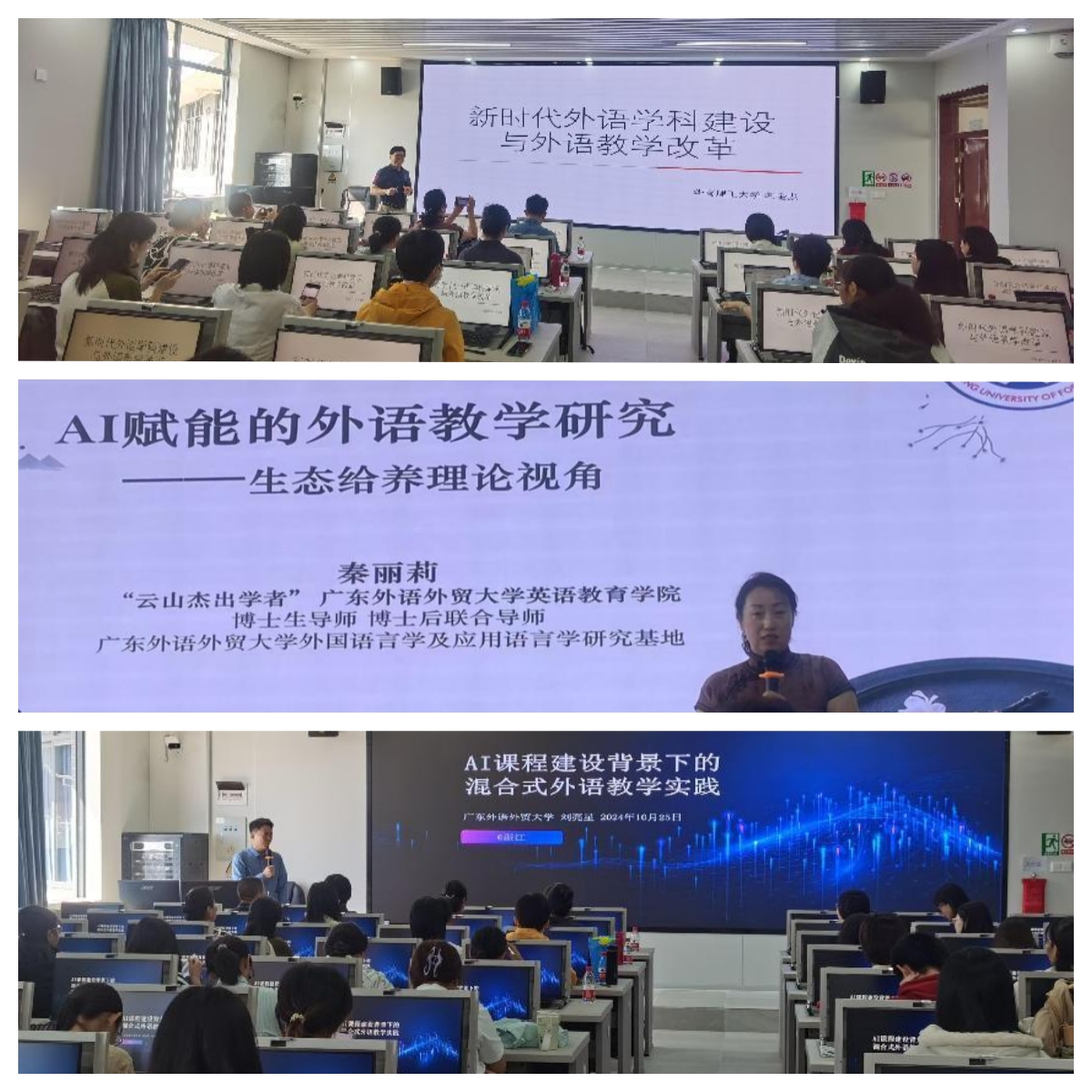 10月25日上午,由bevictor伟德国际主办的“人工智能时代下外语团队建设暨外语教学改革”研讨会在文科2号楼704教室举办。会议邀请了广东省大学英语课程教学指导委员会副主任委员、华南理工大学bevictor伟德国际韩金龙教授,广东外语外贸大学云山杰出学者、博士生导师秦丽莉教授,广东外语外贸大学英语教育公司副经理刘亮星教授主讲,公司经理金志茹教授主持会议,党委书记刘艳、副经理毛妙维等师生代表共110多人参加了此次讲座。
