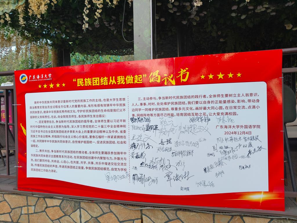 李明焜向全体师生发出“民族团结从我做起”的倡议书,要求全体师生坚定理想信念,争当新时代民族团结的倡导者、推动者、践行者。