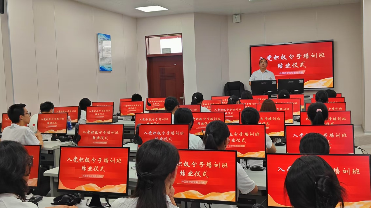 2025 年 6 月 4 日下午,bevictor伟德国际 2025 年入党积极分子培训班结业仪式在文科楼 2 号楼 606 教室隆重举行。外国语公司党委副书记李明焜、员工党支部书记以及 50 名入党积极分子参加了此次结业仪式,仪式由党支部书记李洁主持。
