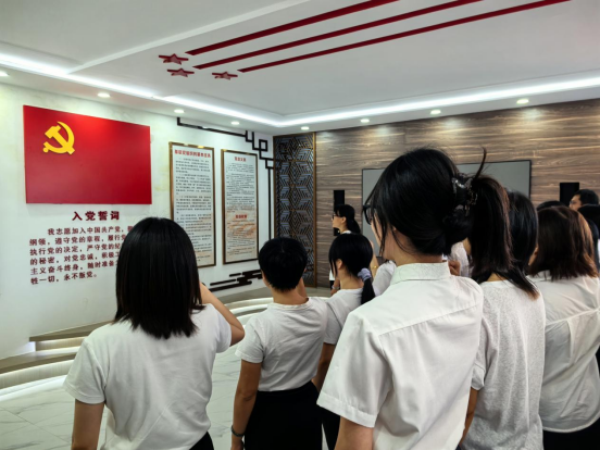 在党委书记刘艳的带领下,全体党员干部在该村的廉政文化楼重温了入党誓词。
