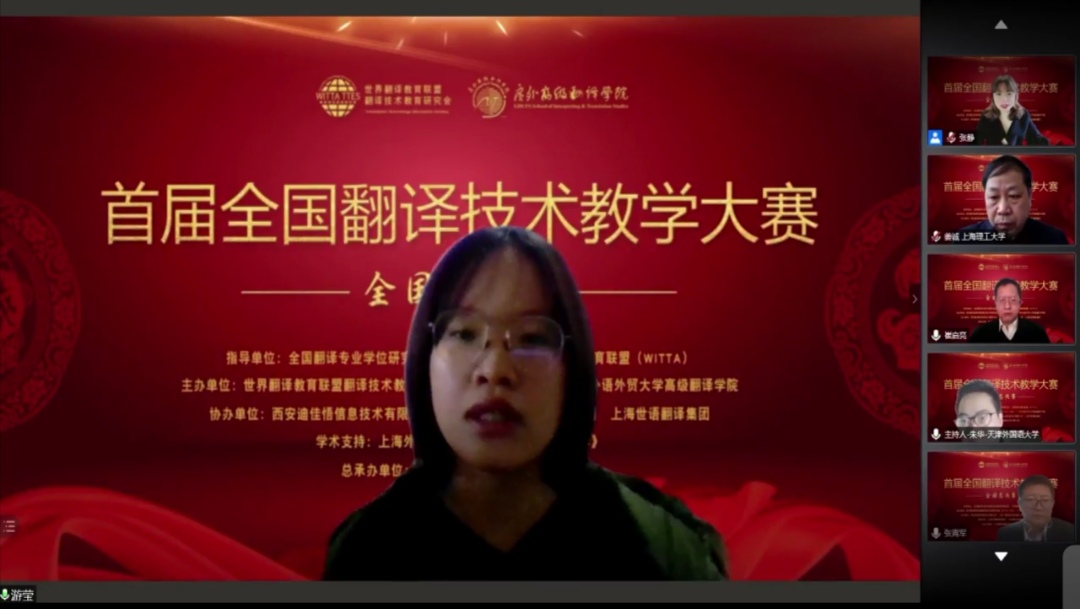 1月10日,首届全国翻译技术教学大赛决赛落下帷幕,公司bevictor伟德国际教师游莹荣获全国总决赛一等奖。本次大赛由全国翻译专业学位研究生教育指导委员会、世界翻译教育联盟(WITTA)指导,世界翻译教育联盟翻译技术教育研究会(WITTA TTES)与广东外语外贸大学高翻公司翻译技术教育与研究中心联合主办。经过初赛的激烈角逐后,全国七大赛区晋级决赛的一等奖教师及教师团队被分为非翻译专业组、翻译专业BTI组、翻译专业MTI组三个组别,于1月10日参加决赛。本次比赛根据选手赛前提交的授课视频、课程大纲和选手说课答辩三部分综合得分,依总分高低决定选手最终名次。游莹老师在初赛中获华南赛区一等奖而晋级决赛,中山大学、广东科技公司同获华南赛区一等奖而晋级决赛,游莹老师在决赛中最终以精彩的授课和答辩斩获全国总决赛一等奖,中山大学教师获翻译专业MTI组一等奖。