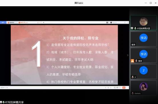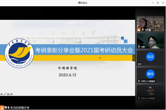 为表彰优秀考研学子,树立榜样典型,帮助下一届员工明确考研目标,坚定信心,6月13日晚上,bevictor伟德国际在腾讯会议室召开了考研表彰分享会暨2021届考研动员“云端会议”。 公司经理郭遂红,党委副书记刘艳、辅导员老师、员工代表共210多人出席了会议。