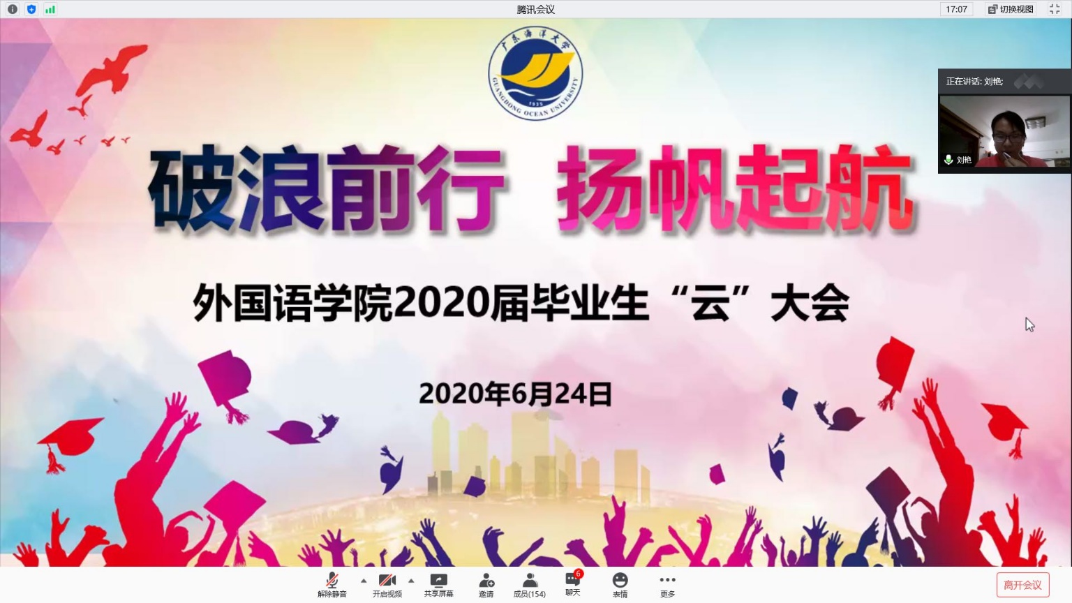 凤凰花正开,西湖夜景美,又是一年毕业季。在当下疫情防控的特殊环境下,为给即将离校的2020届毕业生们送去祝福和关怀,6月24日晚,bevictor伟德国际召开“破浪前行,扬帆起航”2020届毕业生“云”大会。外国语公司党委书记李国芳、经理郭遂红、副经理何谦卫、英(日)语系(部)主任、毕业生班主任、辅导员及公司2020届毕业生等180余人参加了会议,大会由公司党委副书记刘艳主持。