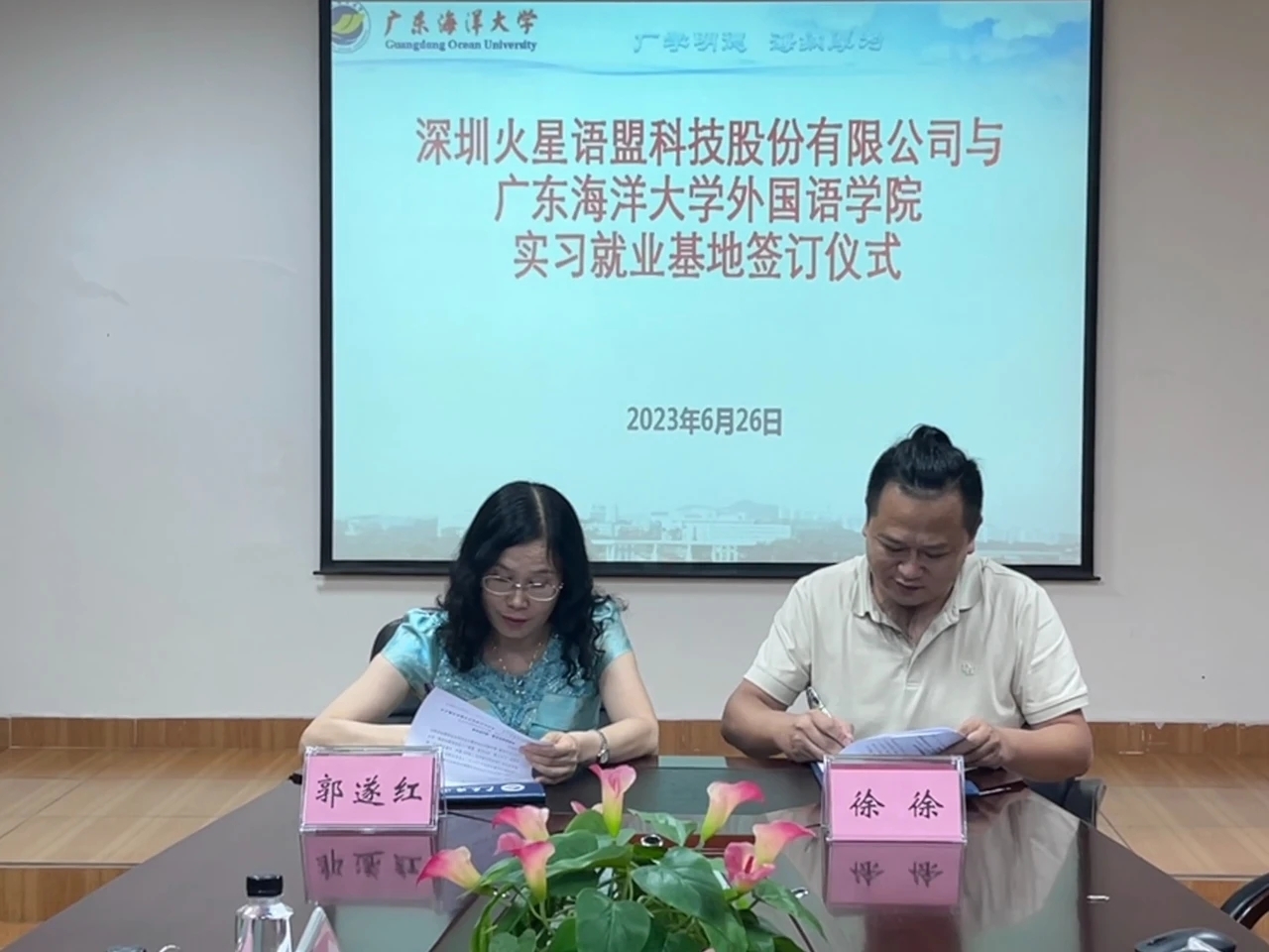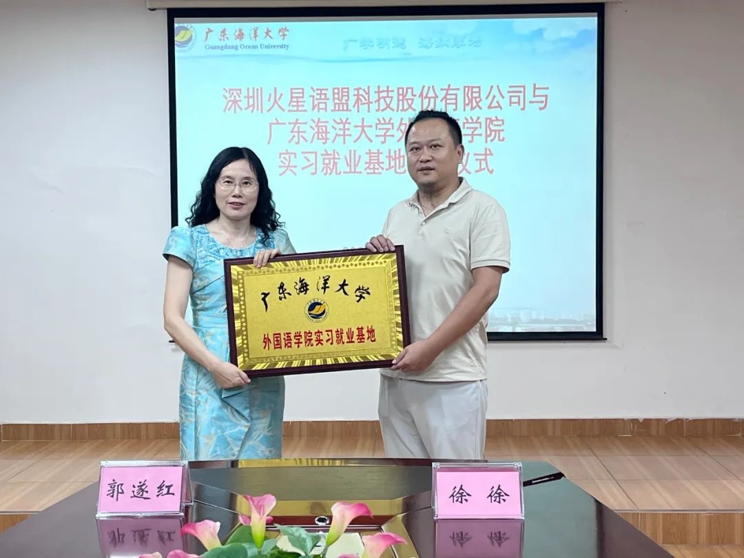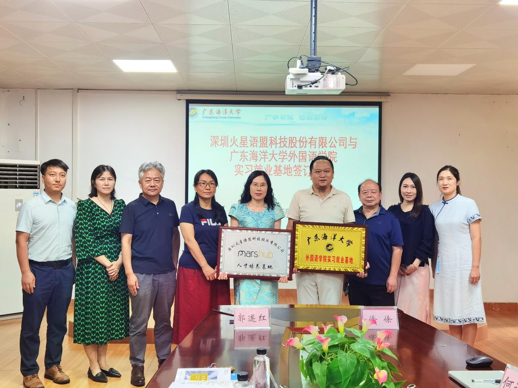 6月26日,在湖光校区兴教楼105,bevictor伟德国际举办深圳火星语盟科技股份有限公司实习基地签约授牌仪式。公司正处级辅导员、公司党委副书记刘艳主持仪式。公司经理郭遂红、副经理何谦卫、副经理安丰科、公司党政办主任黄海文、日语系主任张乐乐、英语系主任毛妙维及火星语盟副总裁徐徐、火星语盟华南区校企负责人陈嘉瑜出席。