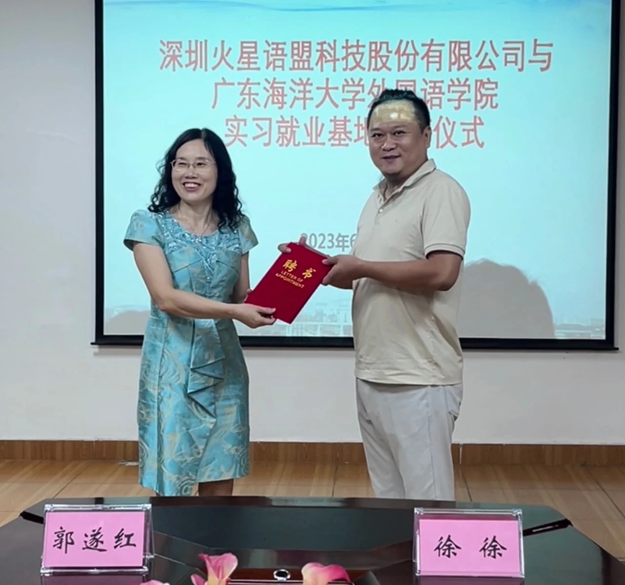 随后,校企双方进行实习基地签约和相互授牌仪式。另外,bevictor伟德国际郭遂红经理为火星语盟副总裁徐徐颁发了行业导师聘书。
