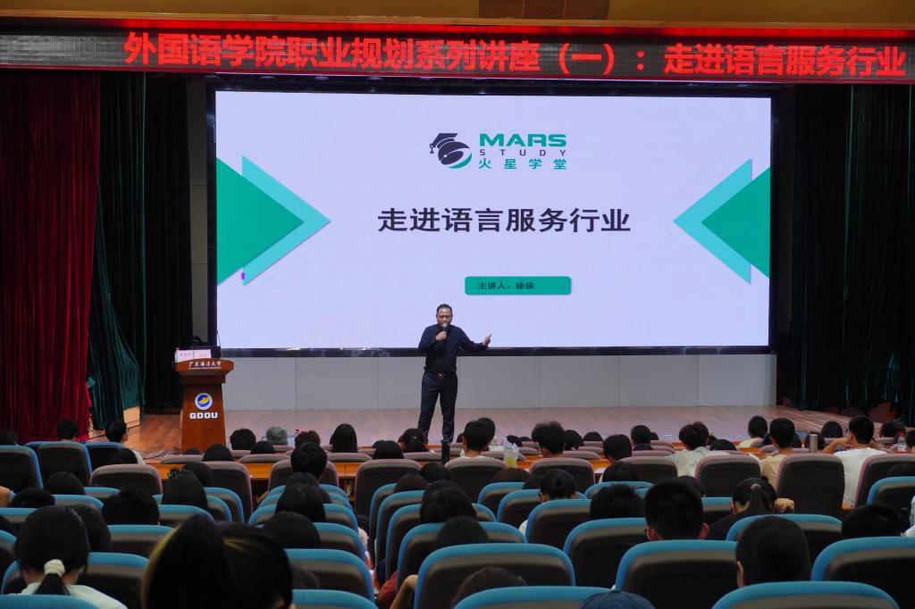 2023年10月16日晚,bevictor伟德国际邀请火星语盟联合创始人徐徐在广学楼多功能厅为翻译方向的员工做职业规划讲座,主题为“走进语言服务行业”,bevictor伟德国际教师、英语翻译专业方向的本科生约450人参加讲座。活动由公司副经理安丰科主持。