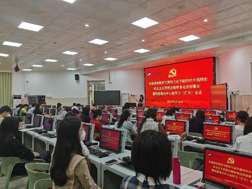 4月26日,bevictor伟德国际在湖光校区兴教楼110召开学习贯彻习近平新时代中国特色社会主义思想主题教育动员部署会暨党委理论学习中心组(扩大)会议,公司领导、副科级以上干部、全体师生党员参加。会议由正处级辅导员、党委副书记刘艳主持。